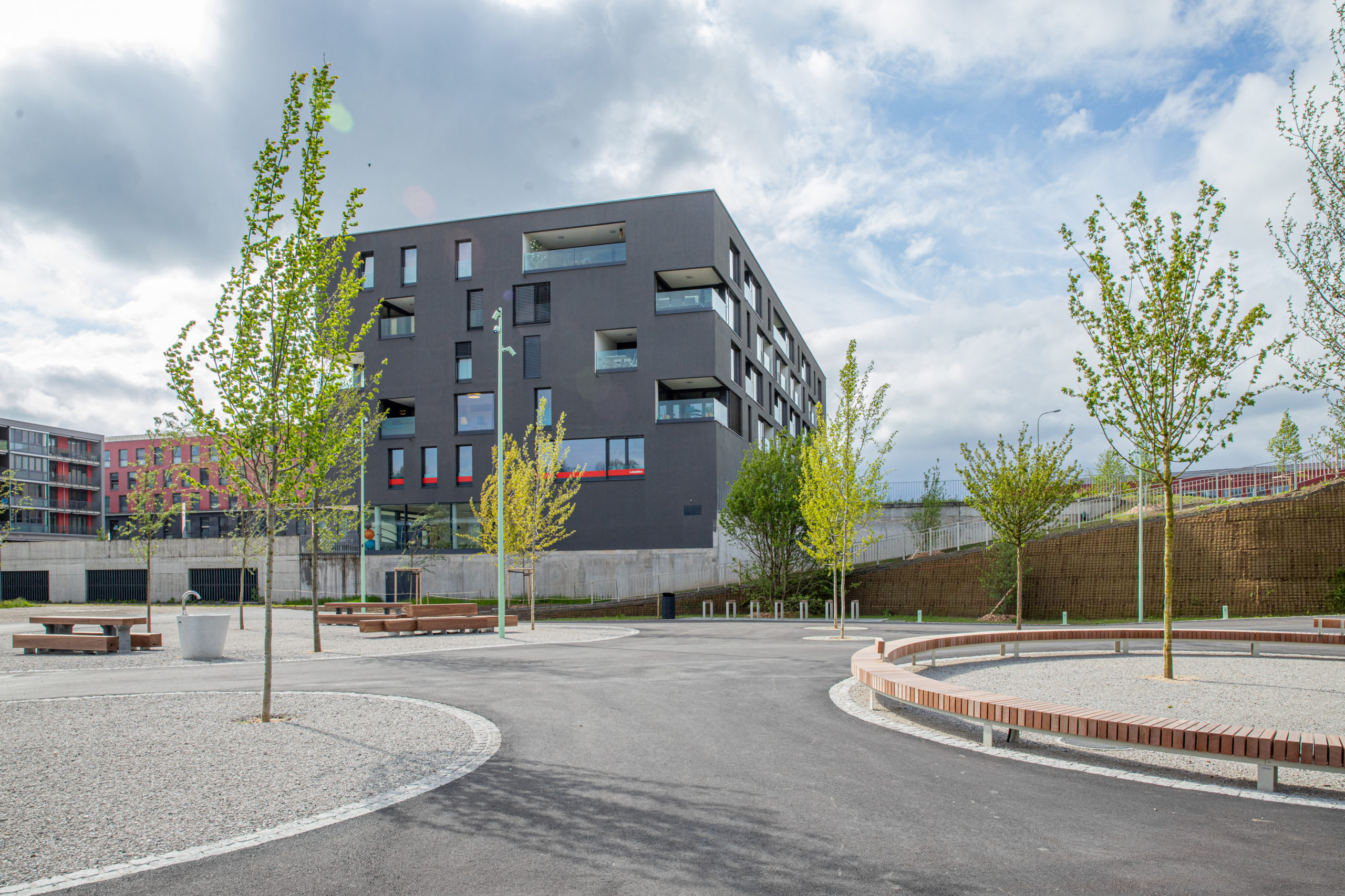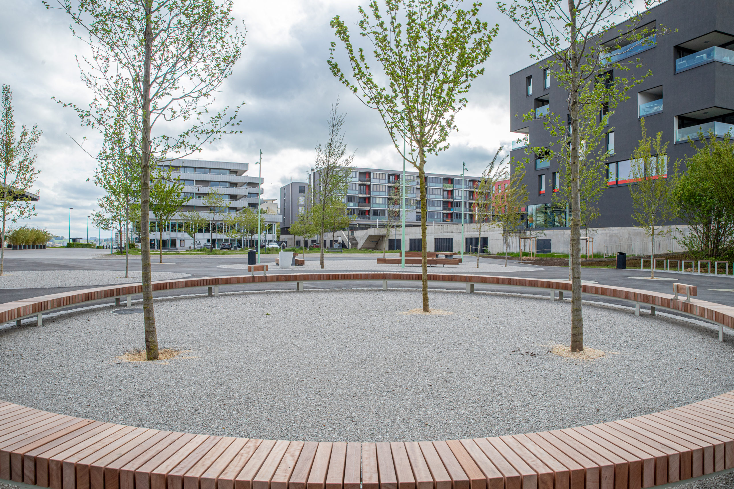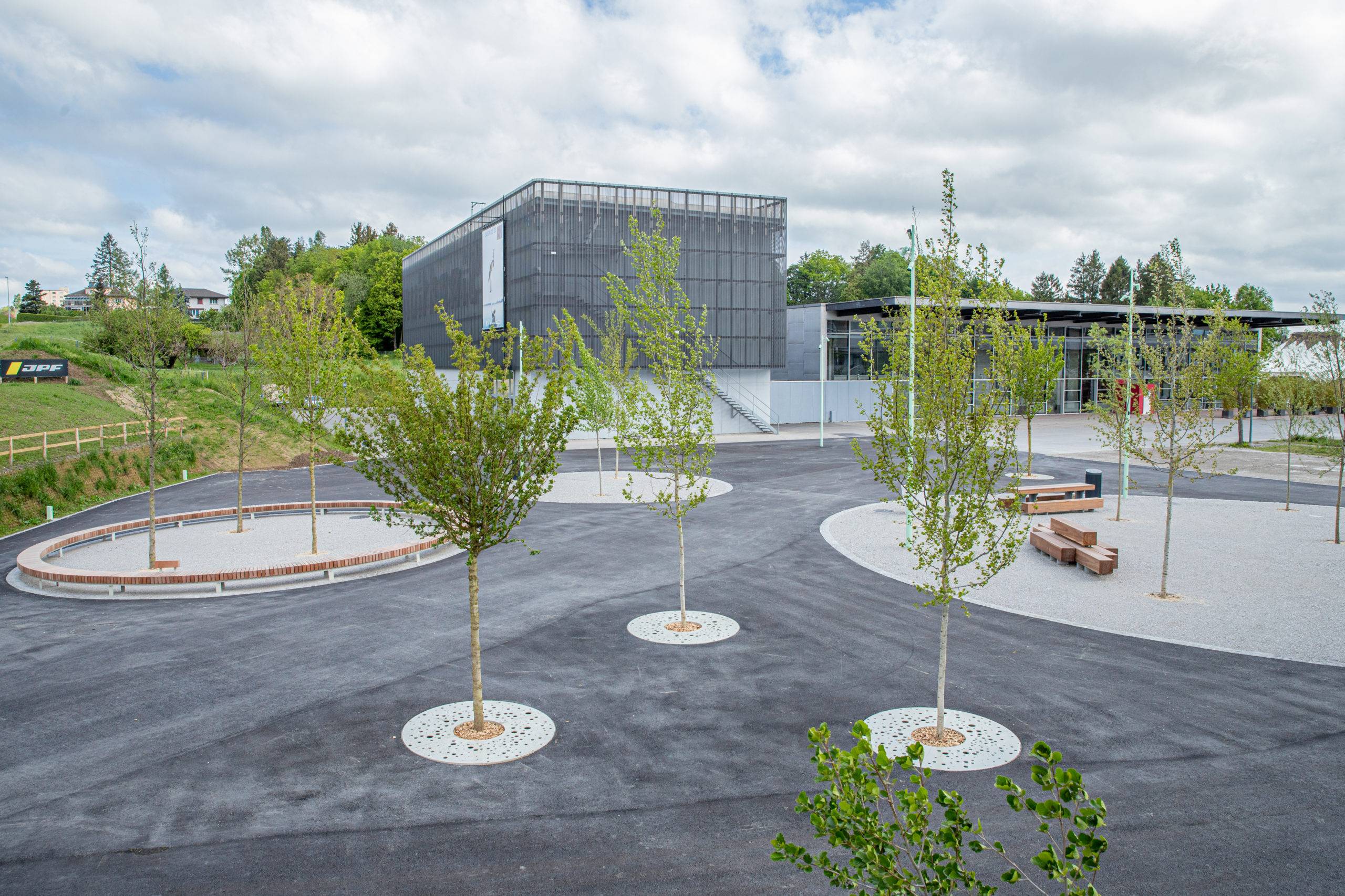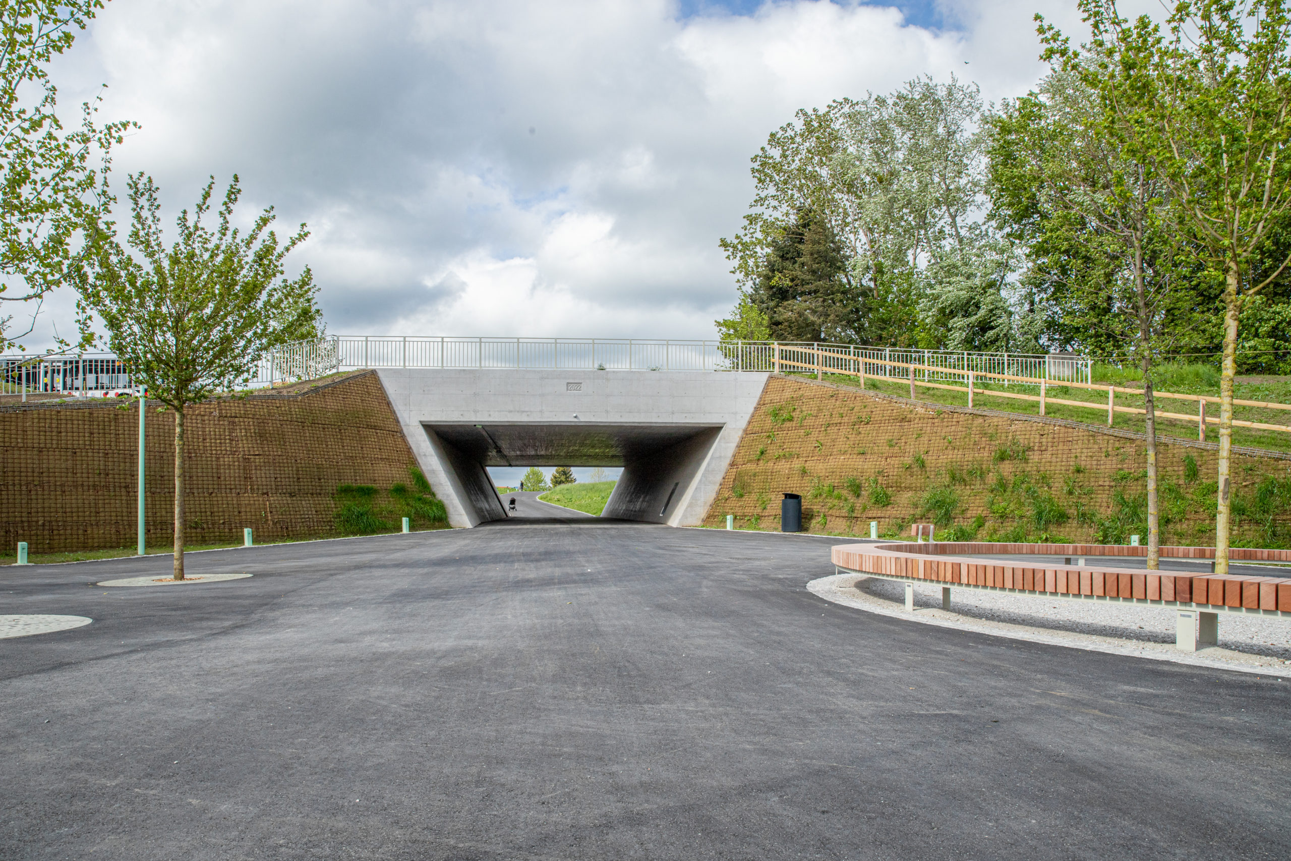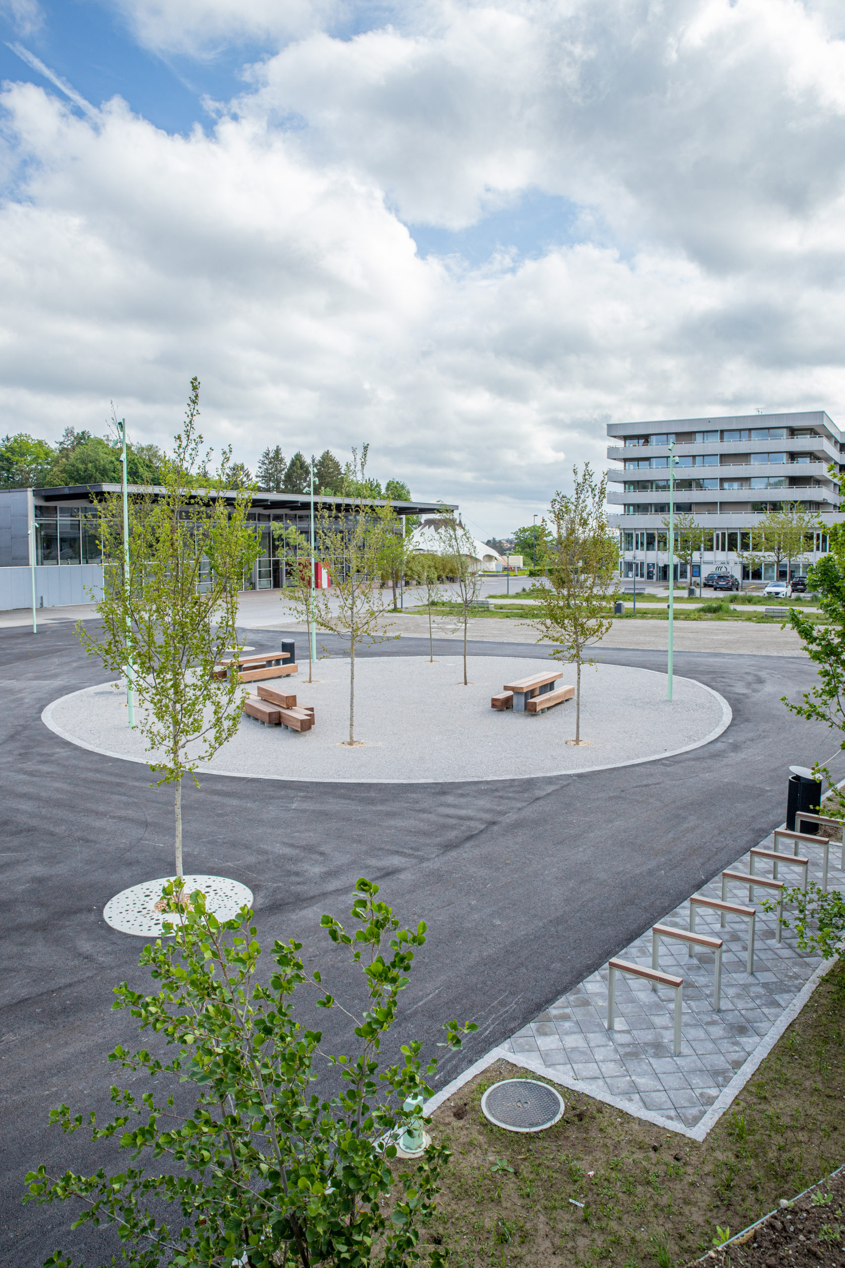 Projet complet d’aménagement de mobilité douce et d’espaces publics à Villars-sur-Glâne, intégrant de grands volumes de terrassements et une coordination fine en milieu communal.