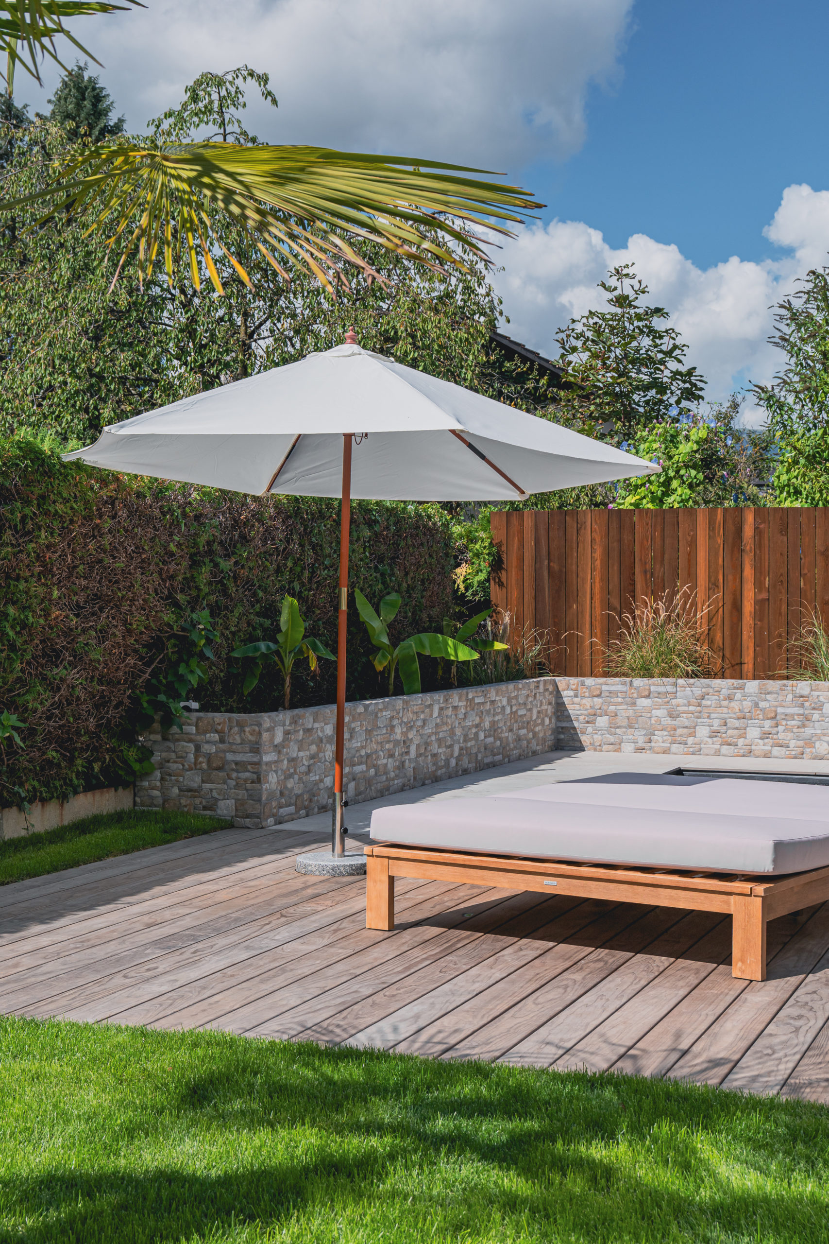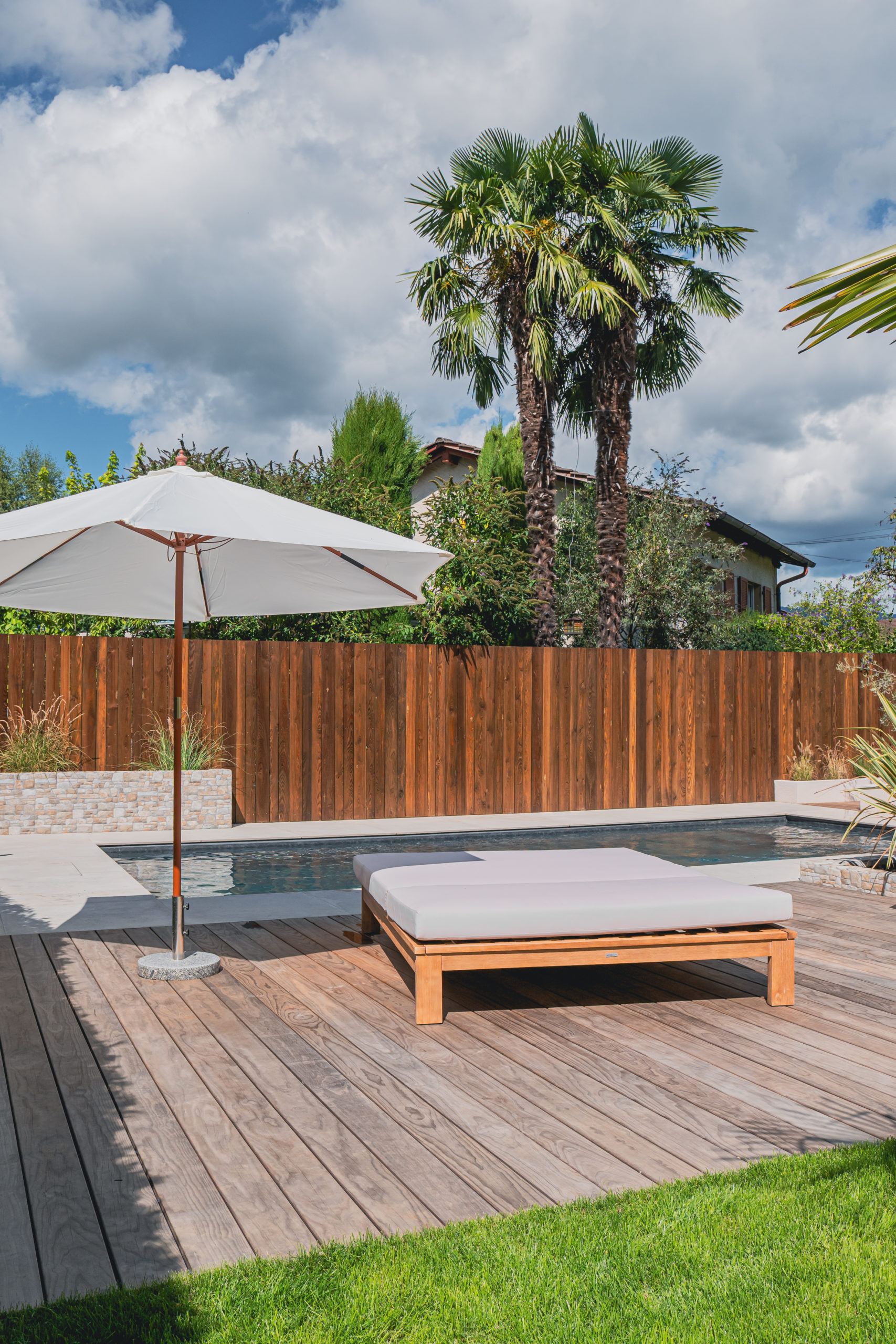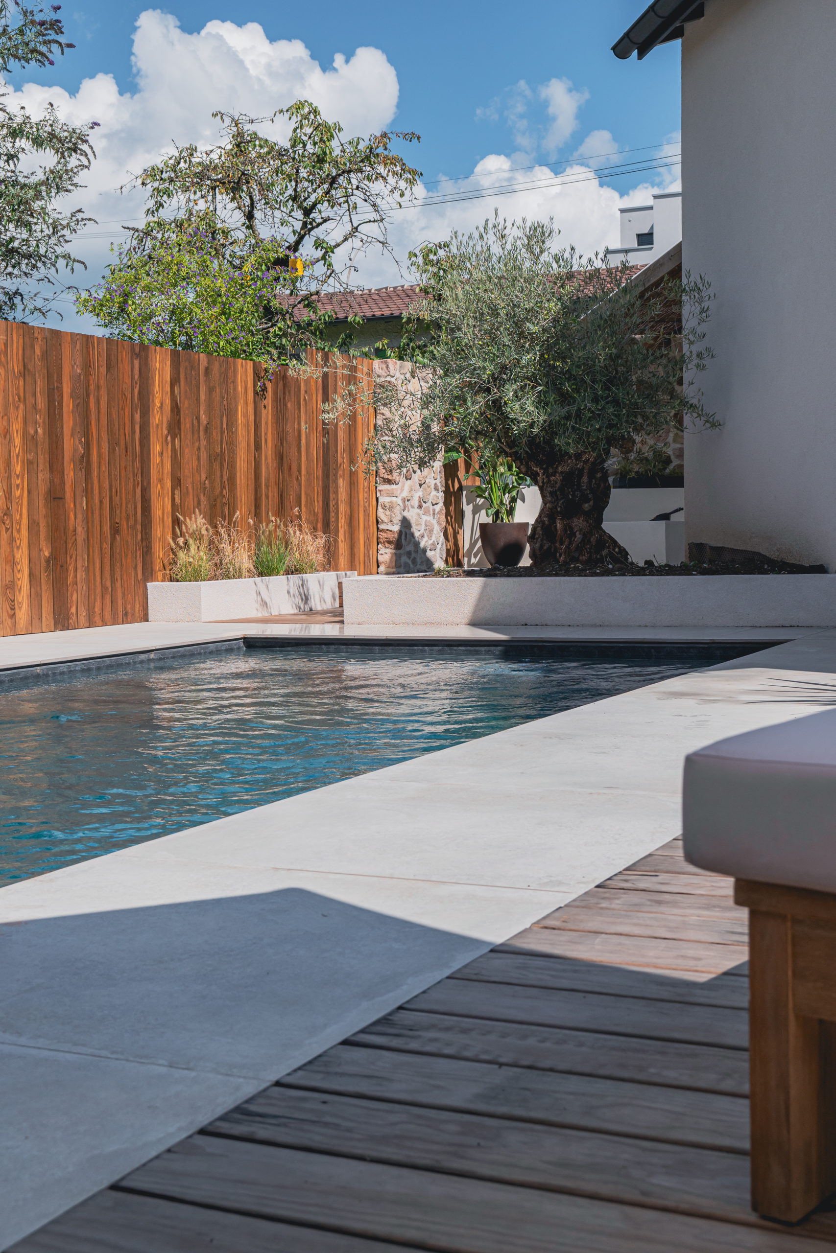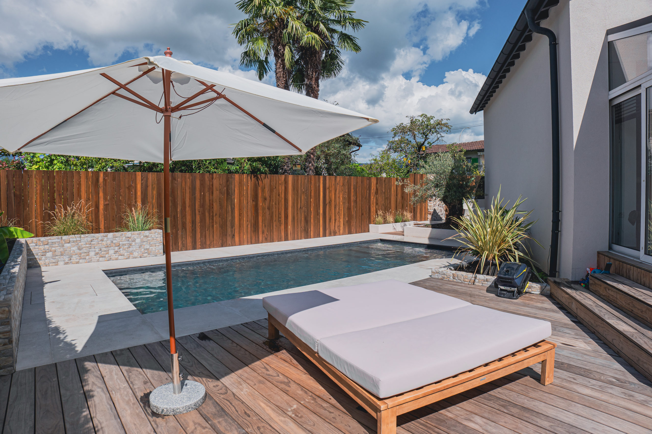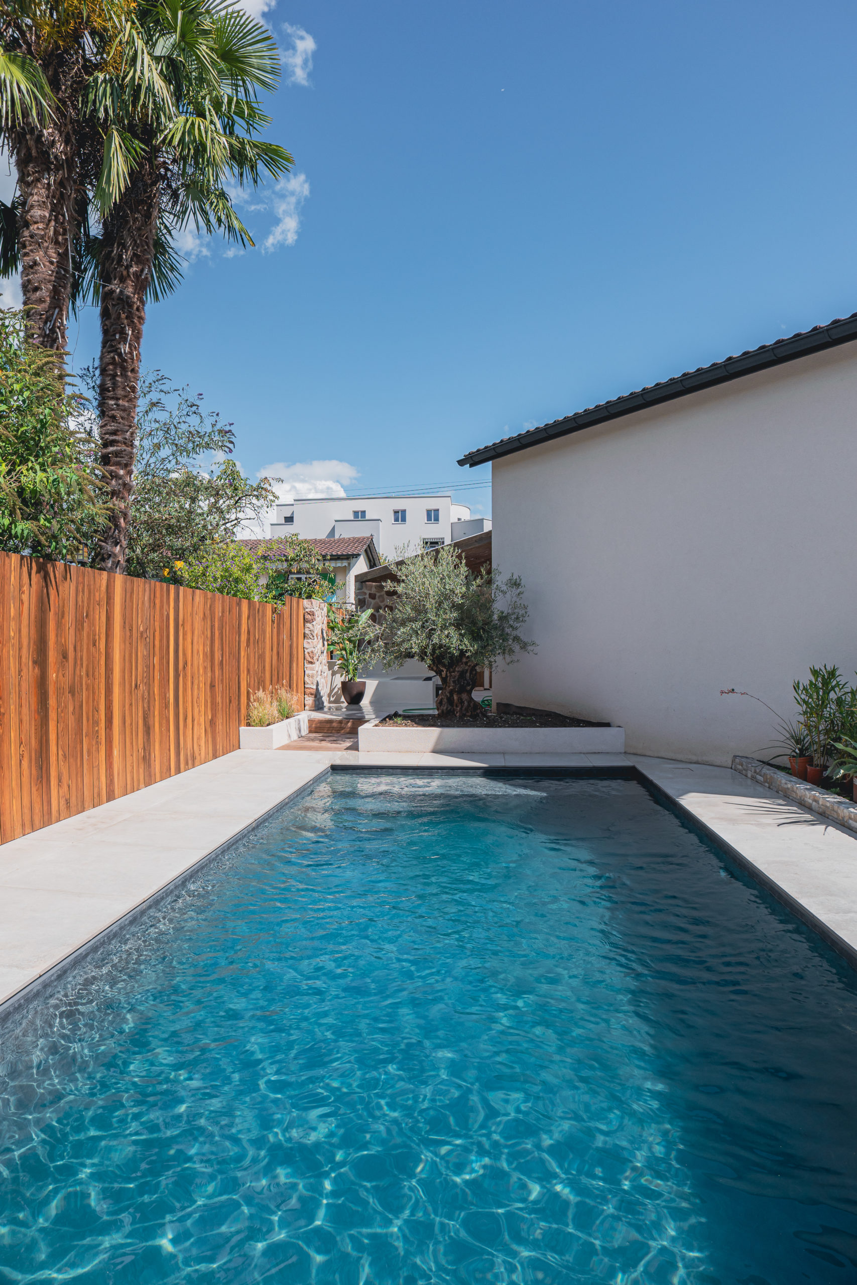 Autour de la Villa Acacias, nous avons repensé l’espace extérieur en intégrant un aménagement complet de la piscine ainsi qu’un gazon plaqué pour un rendu immédiat et soigné. L’ensemble crée un environnement harmonieux, rafraîchissant et parfaitement adapté à la vie en extérieur.